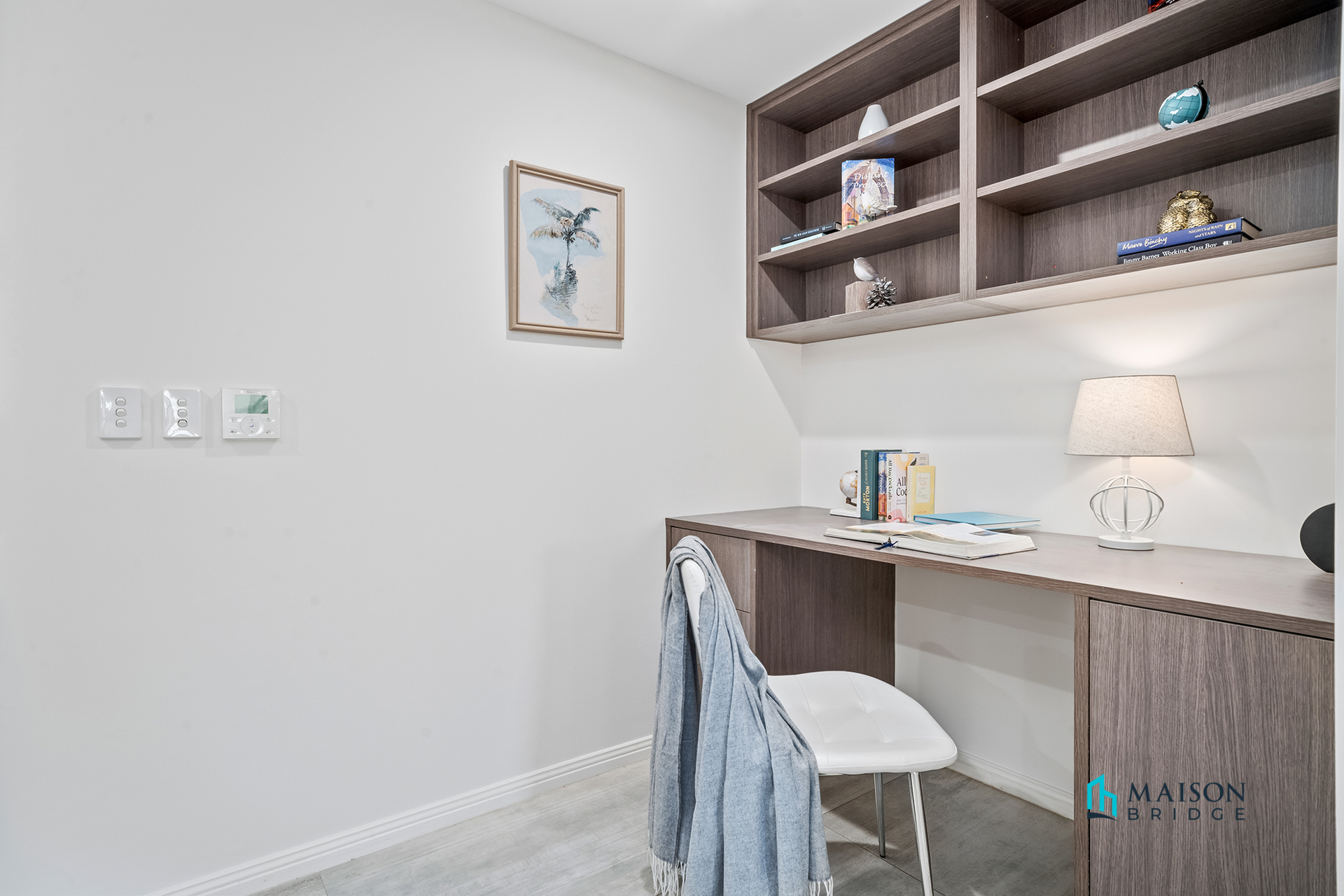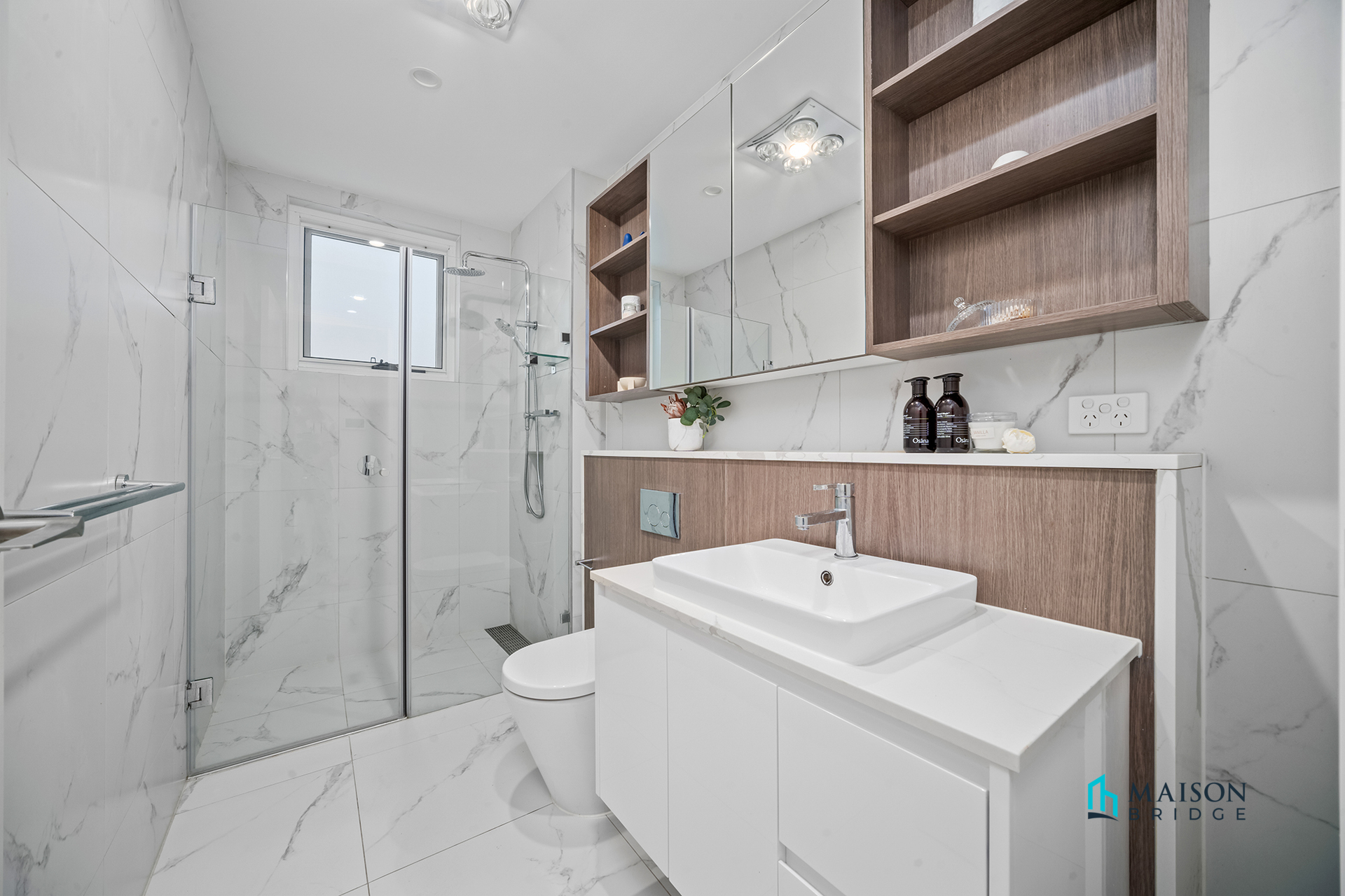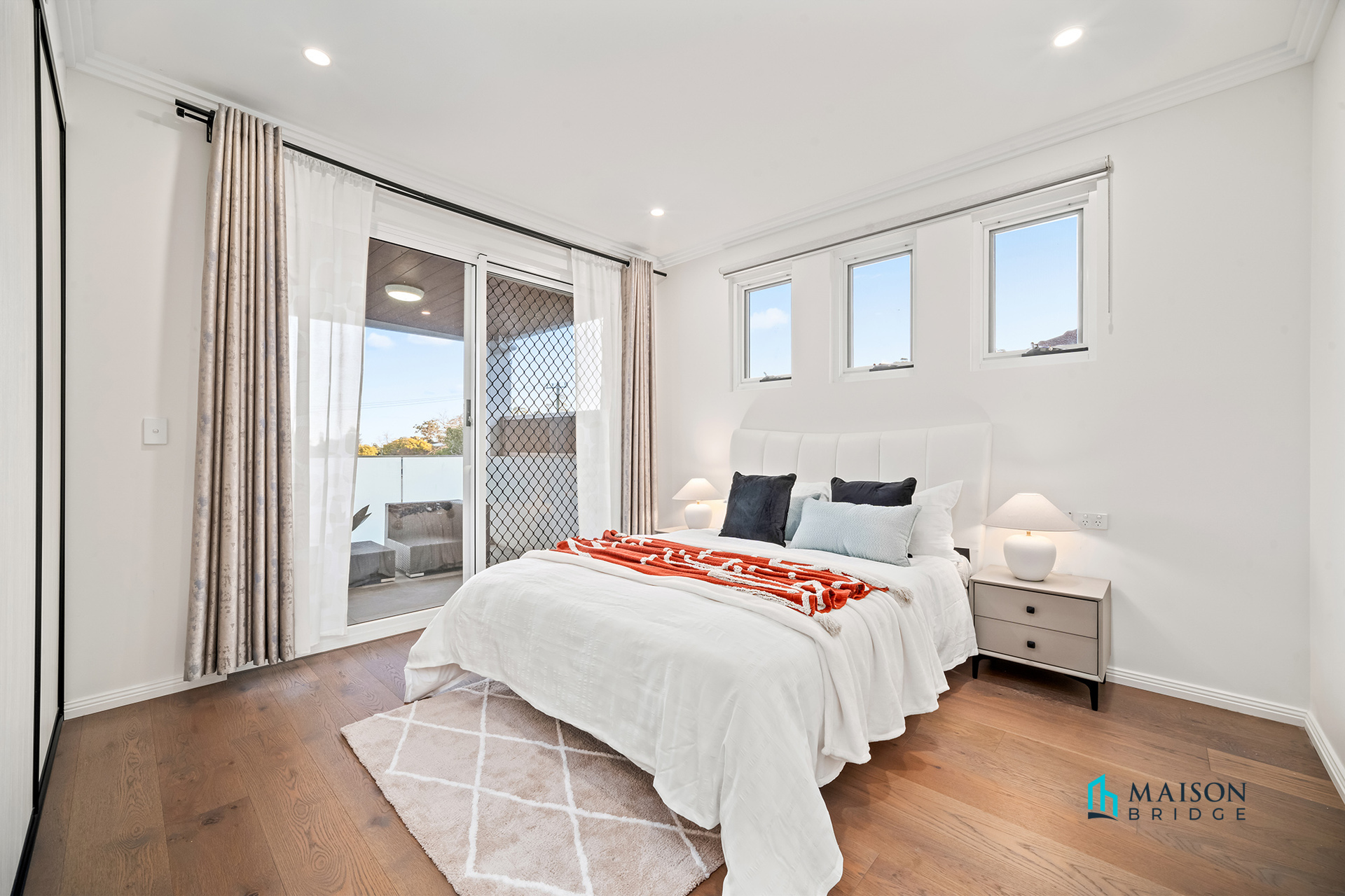 Upstairs, the master bedroom is connected to a private living area (or optional fourth bedroom), offering flexible use as a parents’ retreat or guest zone. Downstairs includes a fifth bedroom, ideal for guests or multigenerational living.