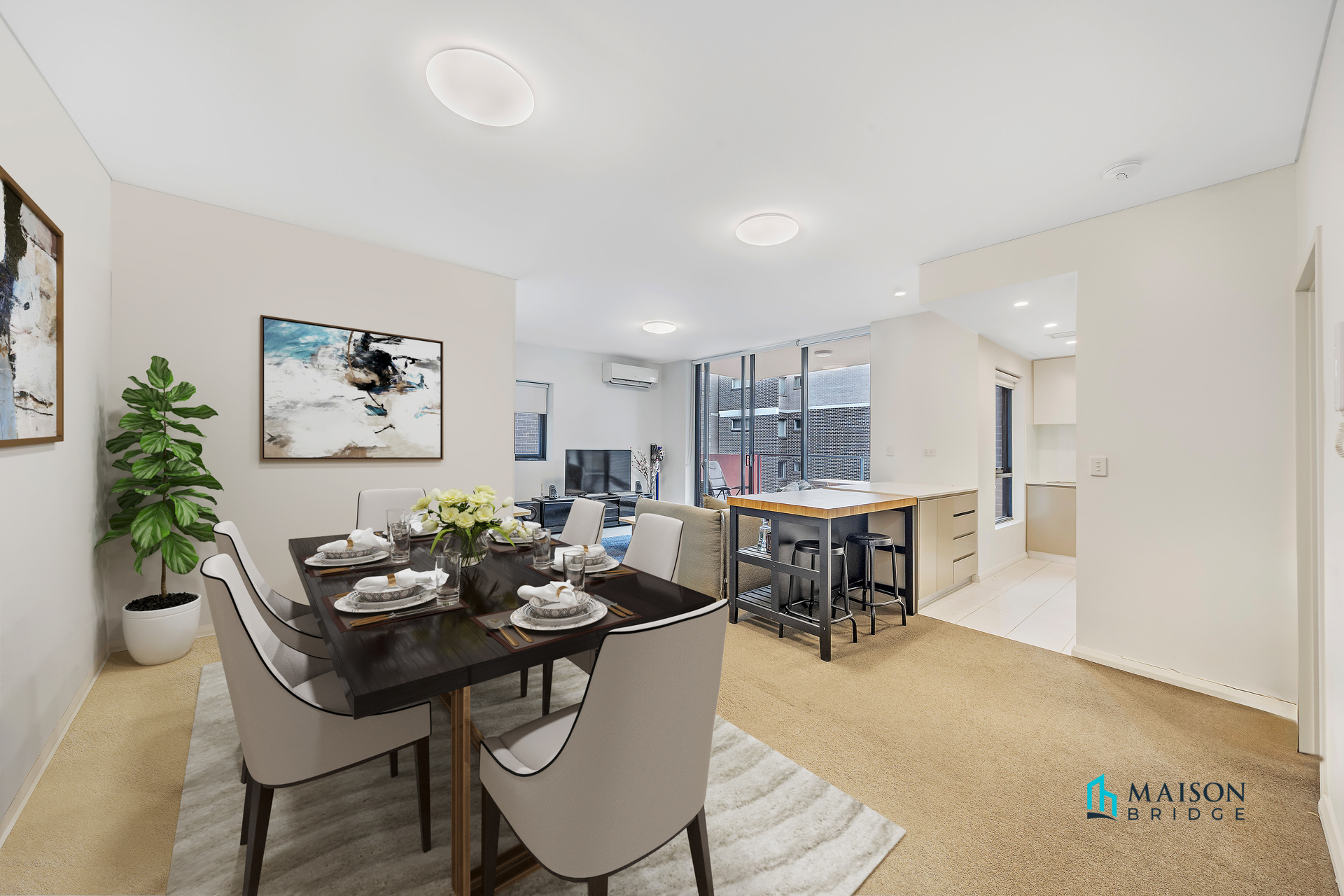* Spacious open-plan living and dining with high ceilings and floor-to-ceiling glass doors