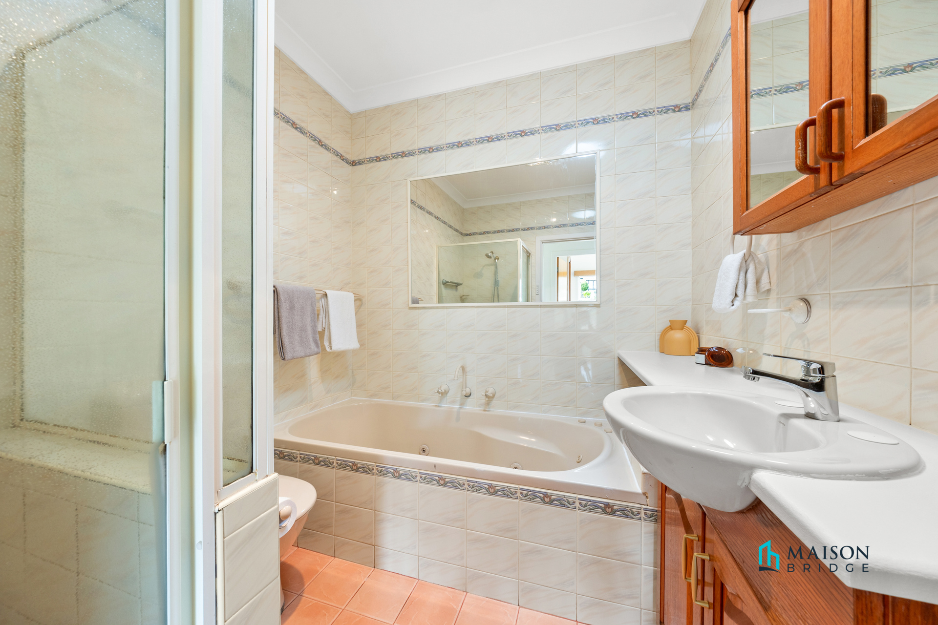 – Fully tiled main bathroom with separate shower and bathtub