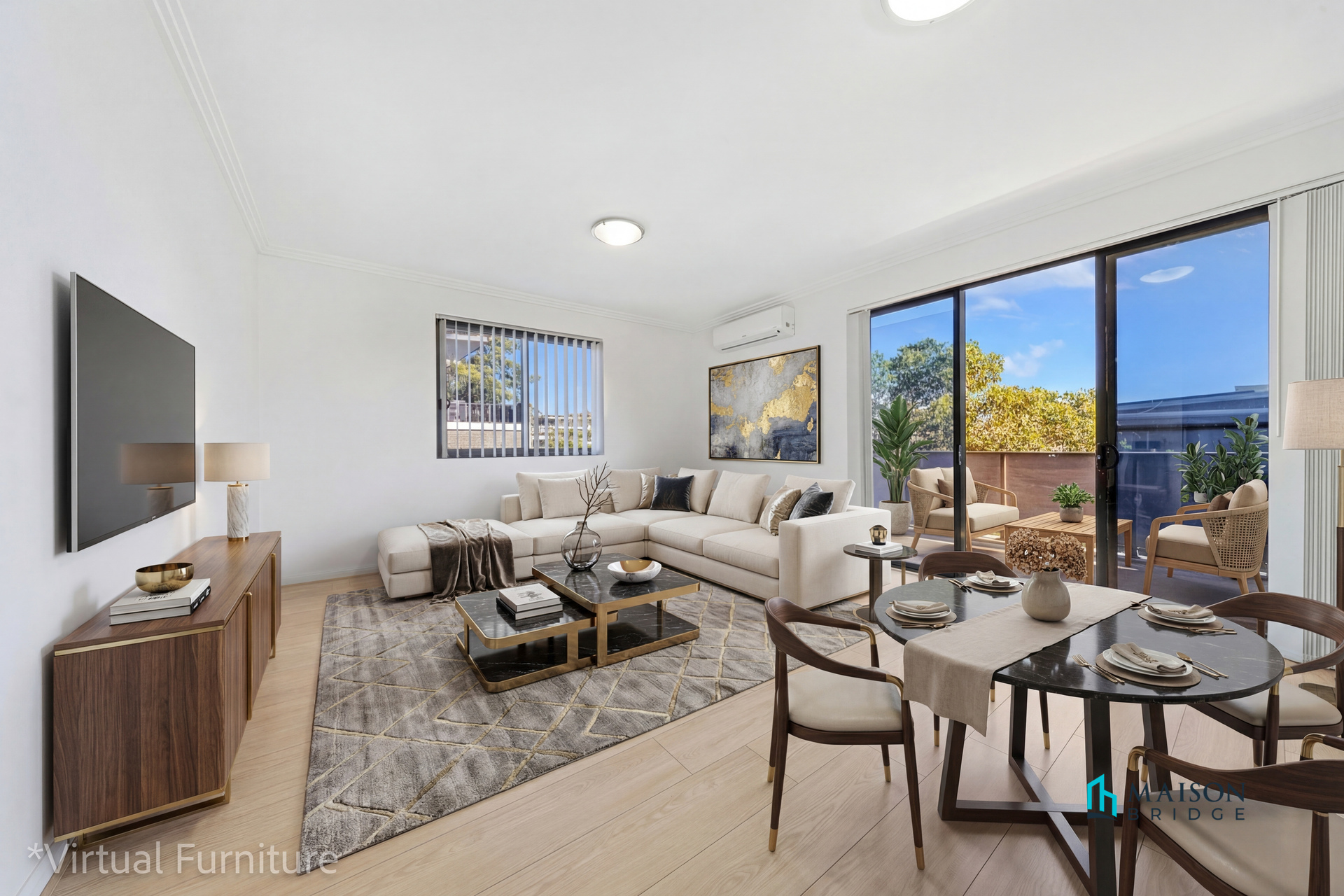 * Light-filled open plan living & dining flowing to an L shape wrapped around balcony