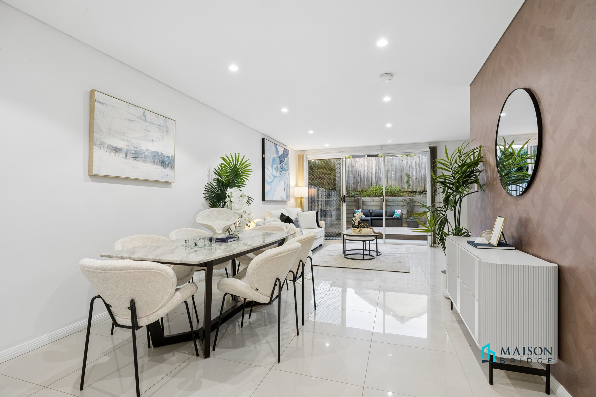 * Bright open plan living and dining area with seamless outdoor connection