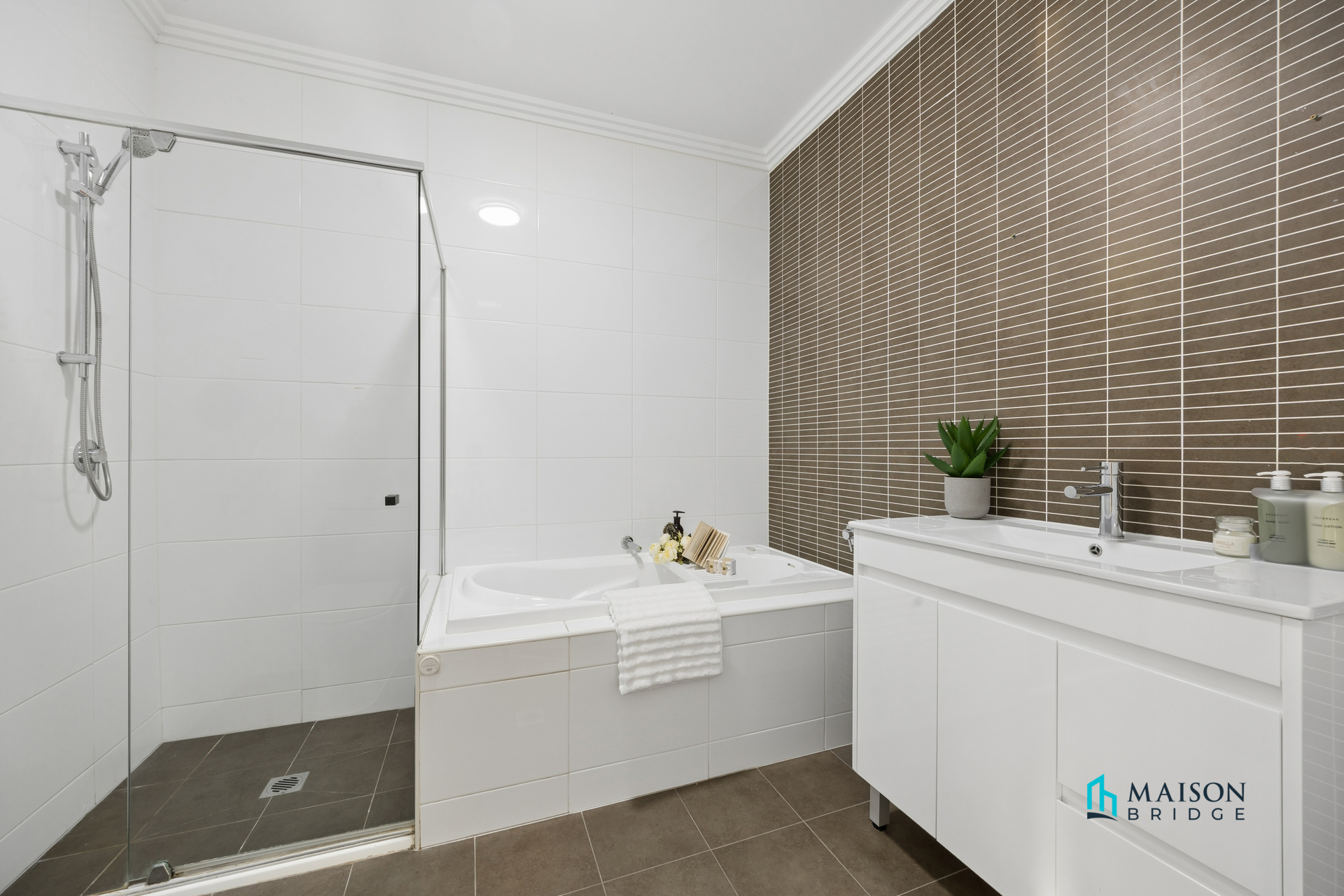 * Modern bathrooms with separate shower and bathtub in the main