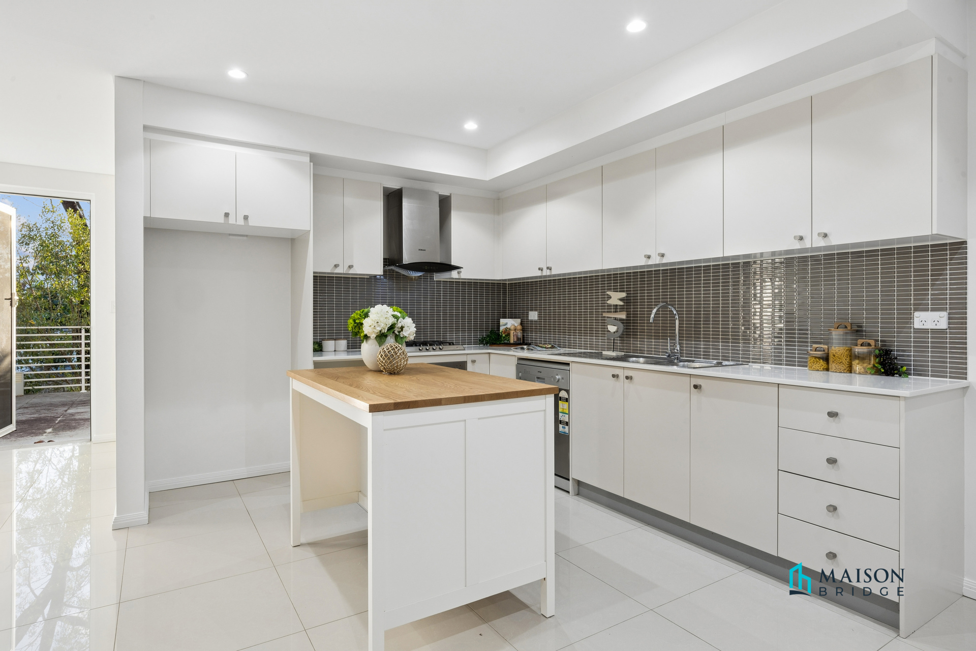 * Modern gas kitchen with stainless steel appliances, stone bench tops and ample cupboard space