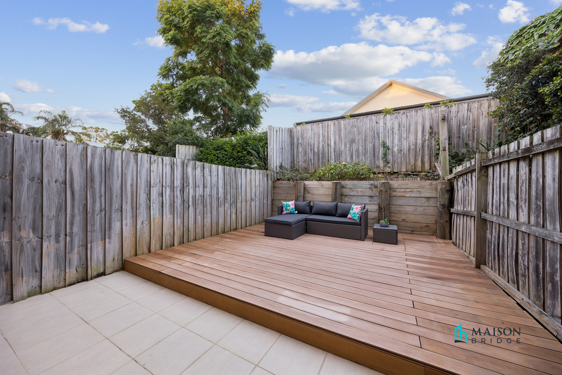 * Private courtyard with timber deck and covered entertaining space