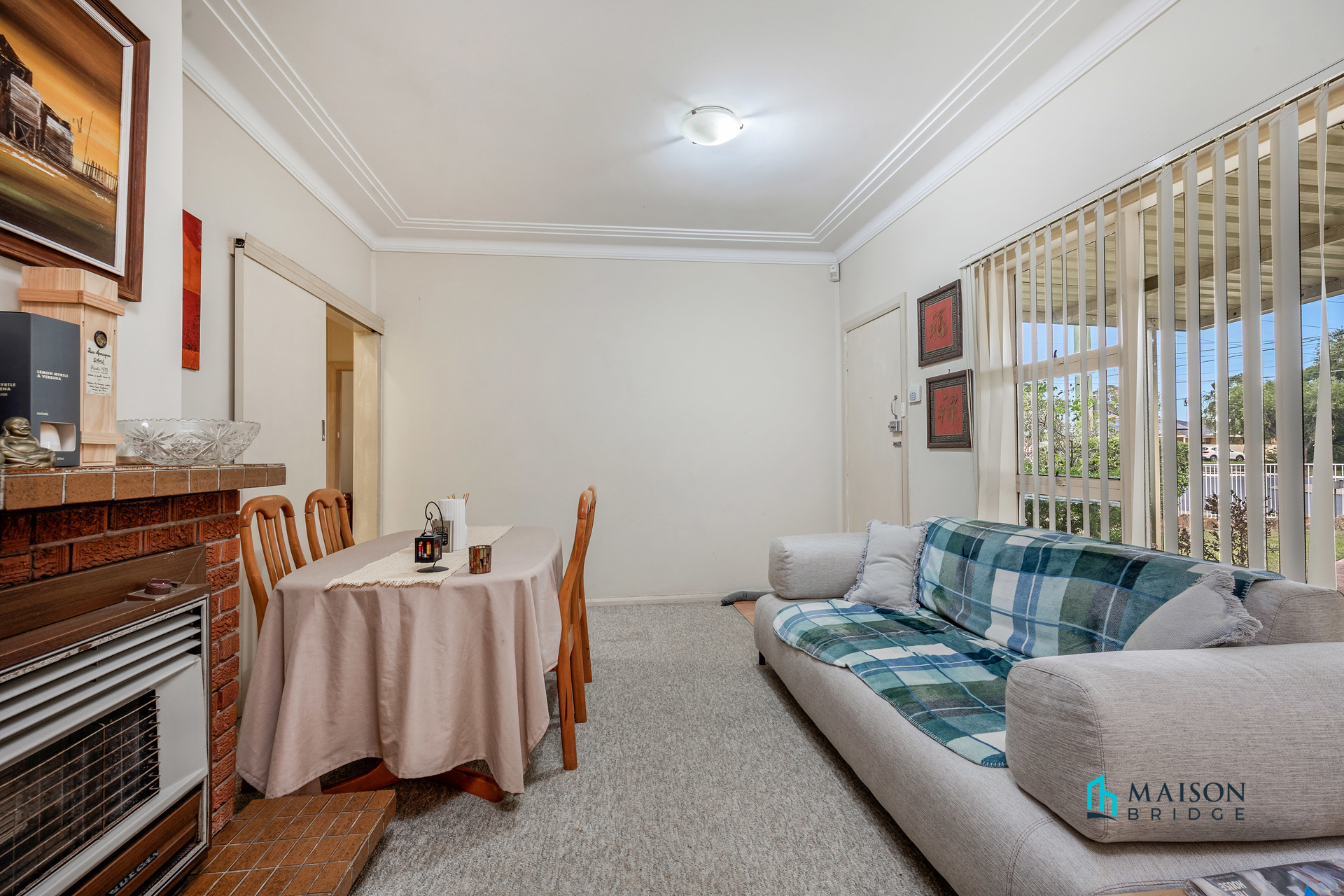 Inside, the home features a spacious combined living and dining area, enhanced by large windows that invite natural light throughout. The practical kitchen provides ample storage and connects seamlessly to the dining zone, while three well-proportioned bedrooms offer comfortable accommodation.